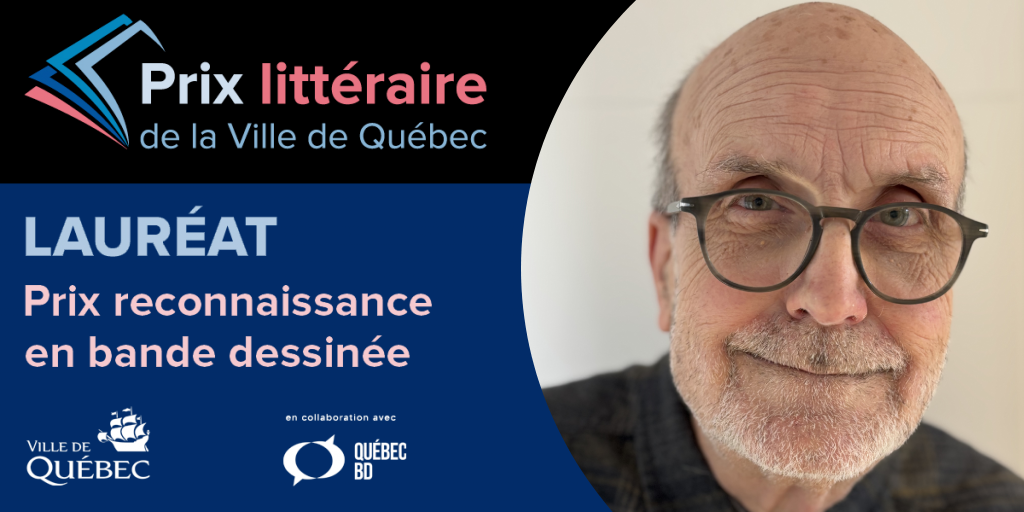 Le Prix reconnaissance en bande dessinée a été attribué cette année à Serge Gaboury, un auteur de bande dessinée de la ville de Québec, toujours actif, qui s’est illustré au cours de sa carrière par son œuvre, son influence et son apport à la pratique du 9e art. Ce prix est décerné par la Ville et Québec BD depuis 2023.