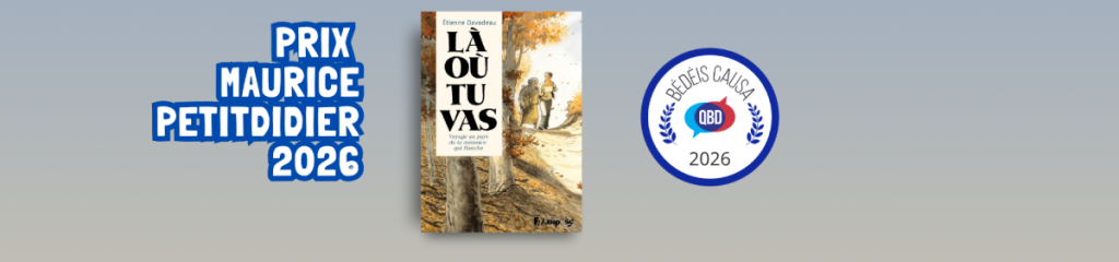 Du côté des albums étrangers, le jury a tenu à souligner deux coups de cœur parmi l’imposante production francophone internationale de 2025. C’est en présence des auteur·ices, en visite au FQBD, que le Prix Maurice-Petitdidier a été remis à Là où tu vas : voyage au pays de la mémoire qui flanche, d’Étienne Davodeau et Françoise Roy (Futuropolis), un album documentaire indispensable où l’auteur suit le parcours de sa femme, spécialisée dans l’accompagnement des personnes atteintes de maladies neurodégénératives. Un album touchant, marqué par la représentation très sensible des réalités de celles et ceux qui sont affecté·es par la perte progressive de la mémoire et sa façon de mettre en lumière le travail discret, exigeant et profondément humain des gens qui œuvrent auprès d’eux.
