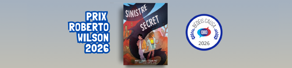 Le Prix Roberto-Wilson, qui souligne un album issu d’une traduction, a été remis par José Wilson, fils de Roberto Wilson, à Sinistre secret, de Molly Lee Knox Ostertag, traduit par Isabelle Allard (Scholastic). Avec cette traduction très réussie, le jury a pu découvrir un roman graphique magnifique et captivant où l’autrice aborde les thèmes de la prise en charge intergénérationnelle, des traumatismes et de l’acceptation de soi.