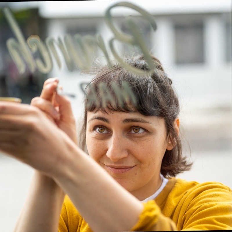 Presque enseignante d’anglais, graphiste puis peintre en lettres, Léa Robitaille a porté de nombreux chapeaux, casquettes et foulards tricotés avant de se consacrer à temps plein au lettrage à la main. C’est aussi avec humour, poésie et humilité qu’elle sait raconter les moments compliqués de l’existence pour en rire un peu, y mettre de la beauté et espérer faire mieux la prochaine fois.